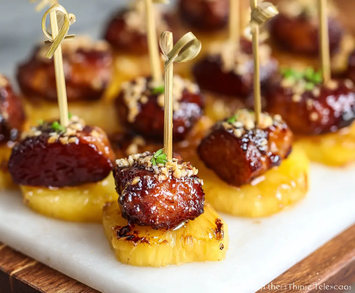 These sweet and savory bites balance the tangy pineapple with tasty barbecue-glazed meatballs, topped with sesame seeds and green onions for extra flavor and texture. Enjoy every delicious bite!