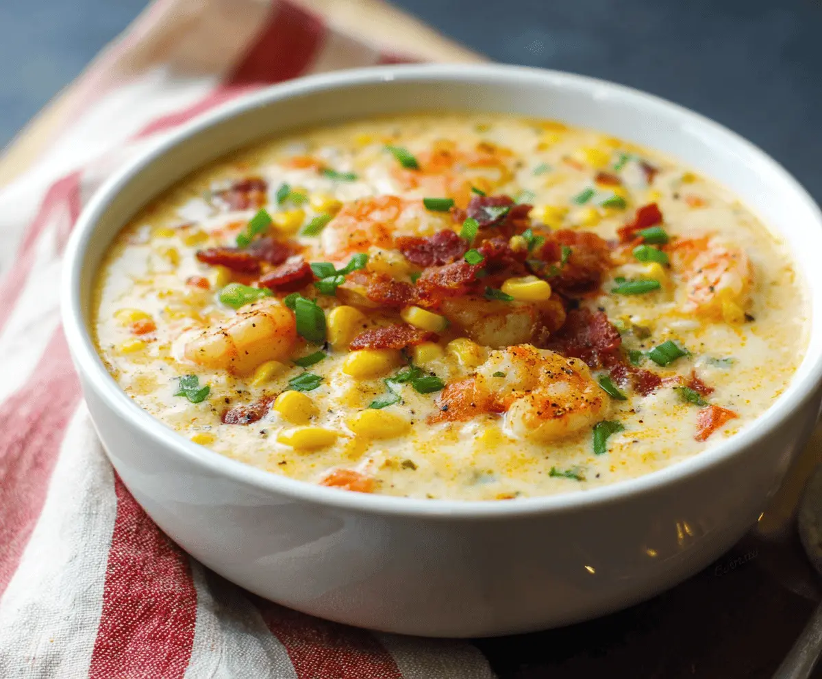 This shrimp and corn chowder is a creamy delight packed with tender shrimp and sweet corn. It’s like a warm hug on a chilly day!
