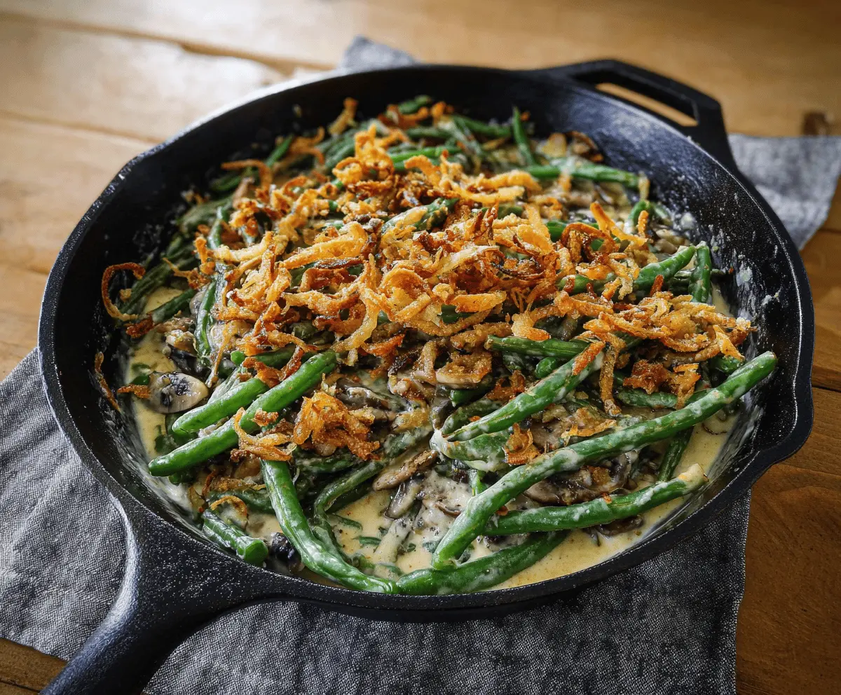 Your Skillet Green Bean Casserole is now ready to enjoy! Serve it warm right from the skillet and delight in the creamy, crunchy textures. Perfect for holidays or any meal!