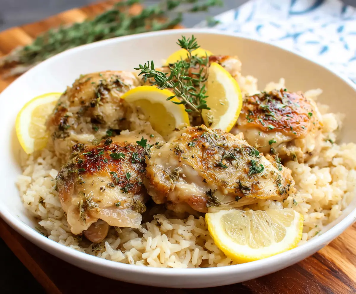 Serve the chicken on a nice bed of rice. Feel free to garnish with extra lemon slices and a sprinkle of fresh parsley or thyme for a pop of color. Sit back, enjoy the delightful aroma, and dig in!