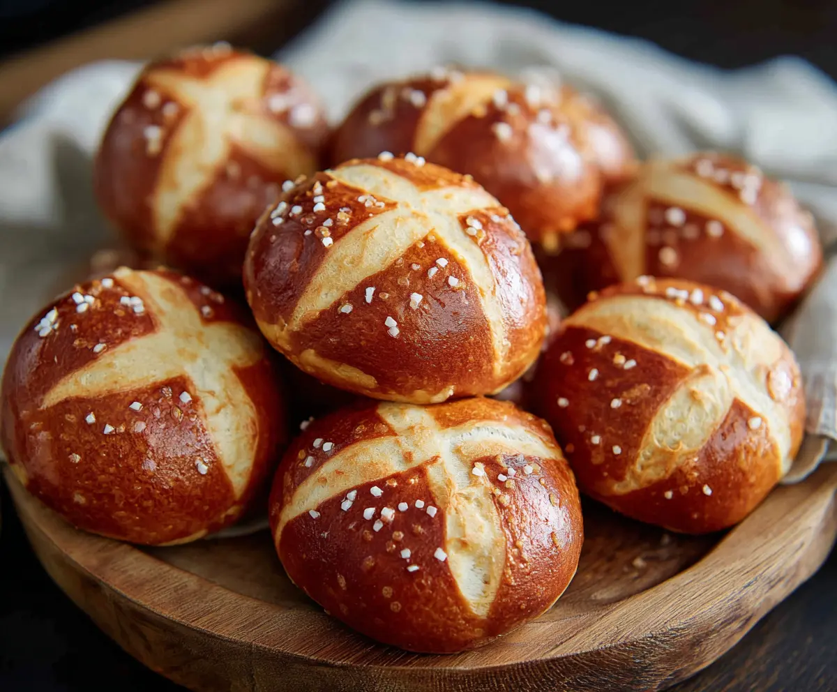 These soft pretzel buns are warm, chewy, and coated in salty goodness! Perfect for sandwiches or just enjoying with some mustard or cheese dip.