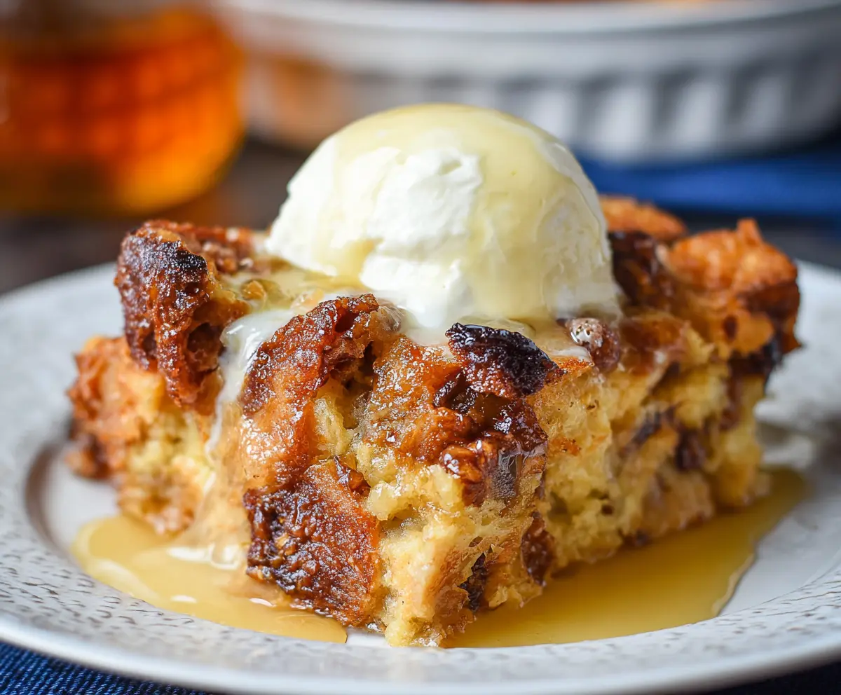 Once it’s out of the oven, let the bread pudding cool for a few minutes. It’s best enjoyed warm. You can serve it straight from the dish, drizzled with maple syrup or caramel sauce, and maybe a scoop of vanilla ice cream or whipped cream on the side for extra indulgence.
