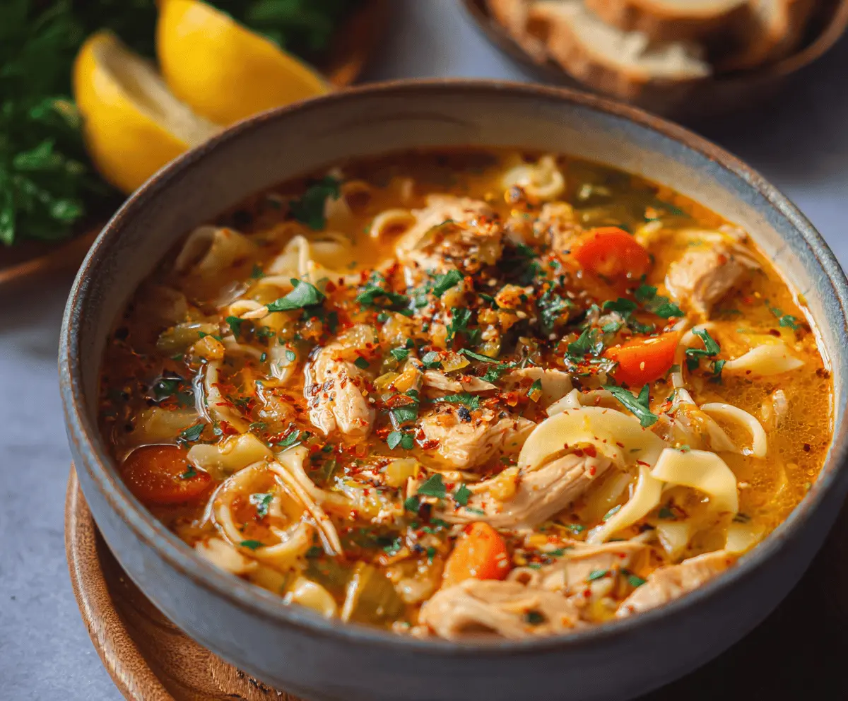 This Spicy Chicken Noodle Soup is warm and cozy with a nice kick! It’s packed with tender chicken, flavorful broth, and hearty noodles—the perfect bowl for any day.