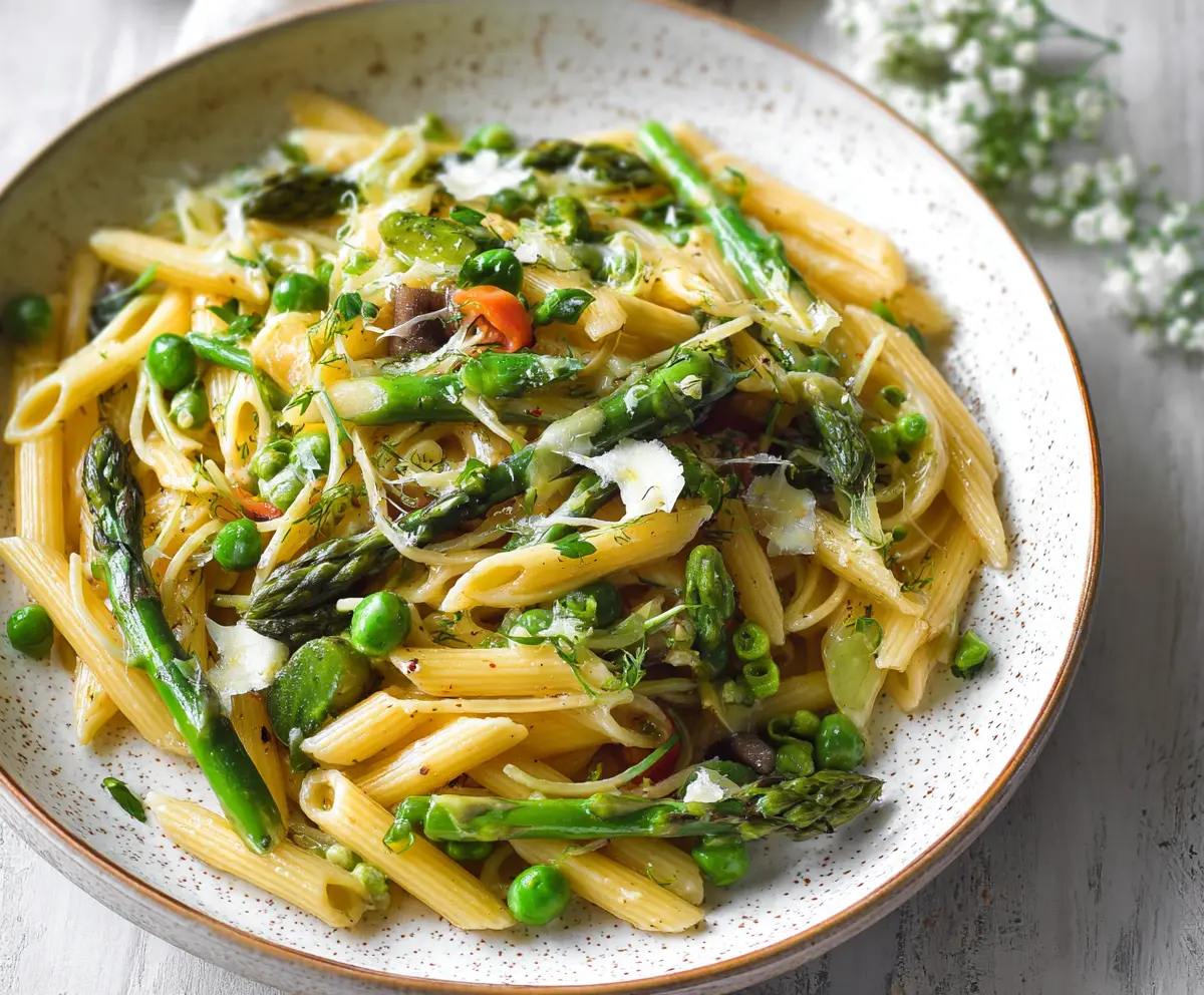 This Spring Vegetable Pasta is a colorful mix of fresh veggies like asparagus, peas, and cherry tomatoes tossed with pasta. It’s like a garden party on your plate!