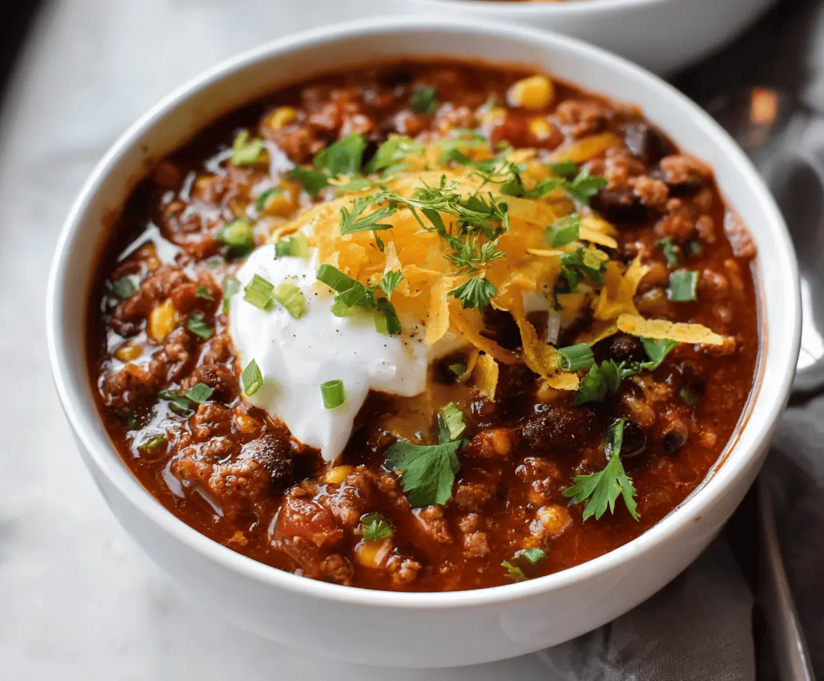This Taco Chili is a hearty mix of beans, ground meat, and spices that brings a touch of fiesta to your dinner table. It’s warm, filling, and oh-so-flavorful!