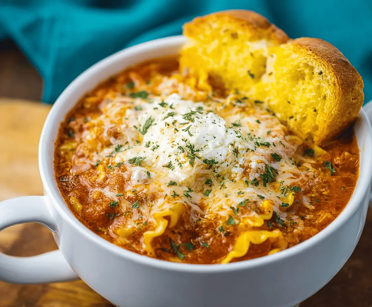 It’s like lasagna, but in soup form—how fun is that? I love topping mine with fresh basil and a sprinkle of extra cheese. It makes every spoonful feel special! 😊